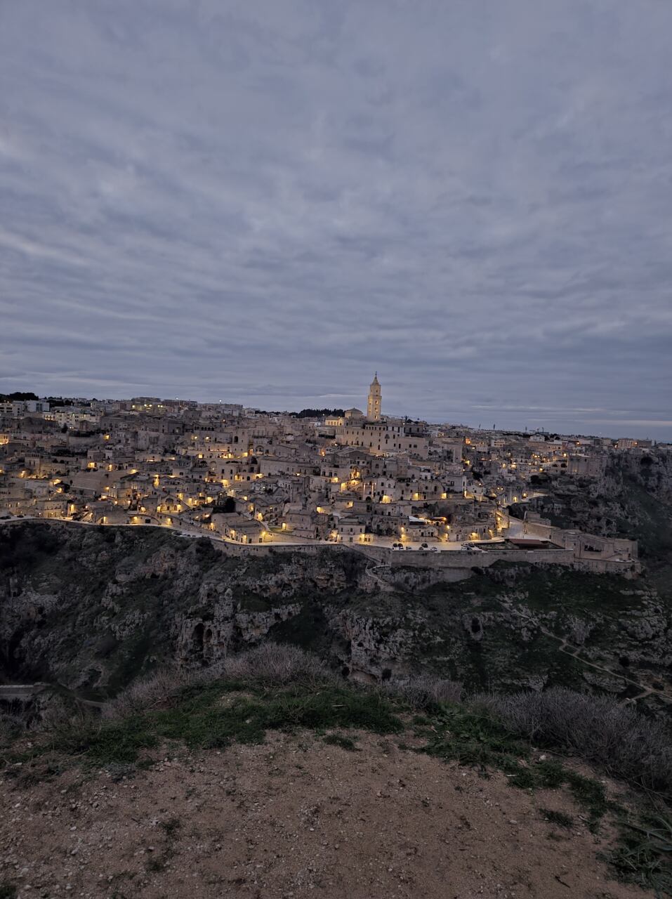 Als die Dämmerung hereinbrach, wurde Matera noch einmal völlig verwandelt. Die Lichter in der Stadt erstrahlten und tauchten den Ort in ein magisches Licht – einfach nur wow.