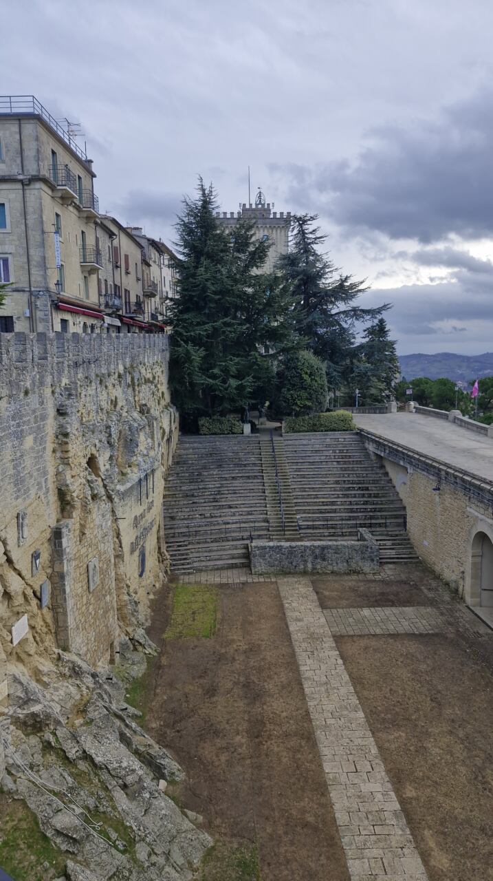 Besonders beeindruckend waren auch die drei Türme, die hoch oben auf den Gipfeln des Monte Titano thronen. Unser erster Stopp war der Guaita-Turm , der älteste und bekannteste der drei Türme. Von hier aus hatten wir eine fantastische Aussicht auf die umliegende Landschaft, die an diesem Tag teilweise unter einer dicken Nebelschicht lag – ein atemberaubender Anblick.