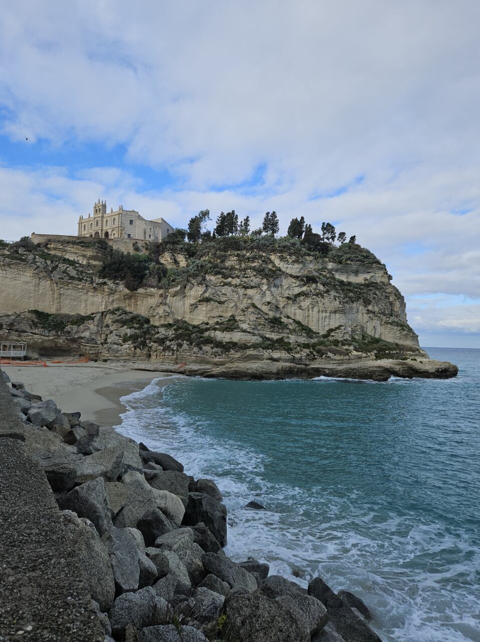 Der Regen hielt auch die Fahrt über an und teilweise kam sogar Schneefall dazu – ein Wetter, mit dem wir in Süditalien so gar nicht gerechnet haben. In Gizzeria fuhren wir schließlich einen Platz am Meer an um zu übernachten und den nächsten Step zu planen. Denn endlich wurde das Wetter wieder besser und somit stand einem Trip nach Tropea nichts mehr im Wege. Dieser erforderte aber doch etwas Recherche, da fast alle Campingplätze/Stellplätze bereits geschlossen waren. Zwar bietet die Stadt zahlreiche Parkplätze, diese sind aber oft nur durch schmale Einbahnstraßen oder niedrige Unterführungen erreichbar. Wir entschieden uns für einen großen, am Hafen gelegenen Platz, der relativ gut erreichbar und mit 1,50 Euro/h auch noch günstig war.