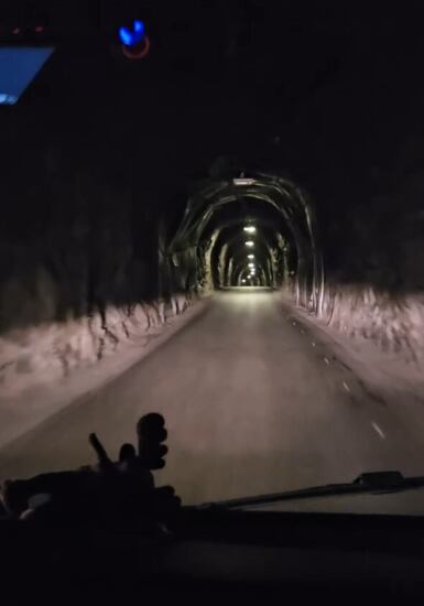 Und tatsächlich ließ das nächste kleine Highlight nicht lange auf sich warten. Wir haben ja bisher in Norwegen schon einige Tunnel durchfahren, darunter auch richtig schmale und dunkle, in die man mit einem Wohnmobil weiß Gott nicht unbedingt freiwillig rein möchte. Wie auch immer, der Vallaviktunnel jedenfalls hat uns schon etwas ins Staunen gebracht. Hier zeigen die Norweger ganz klar, dass sie im Bereich Tunnelinfrastruktur wirklich was drauf haben.