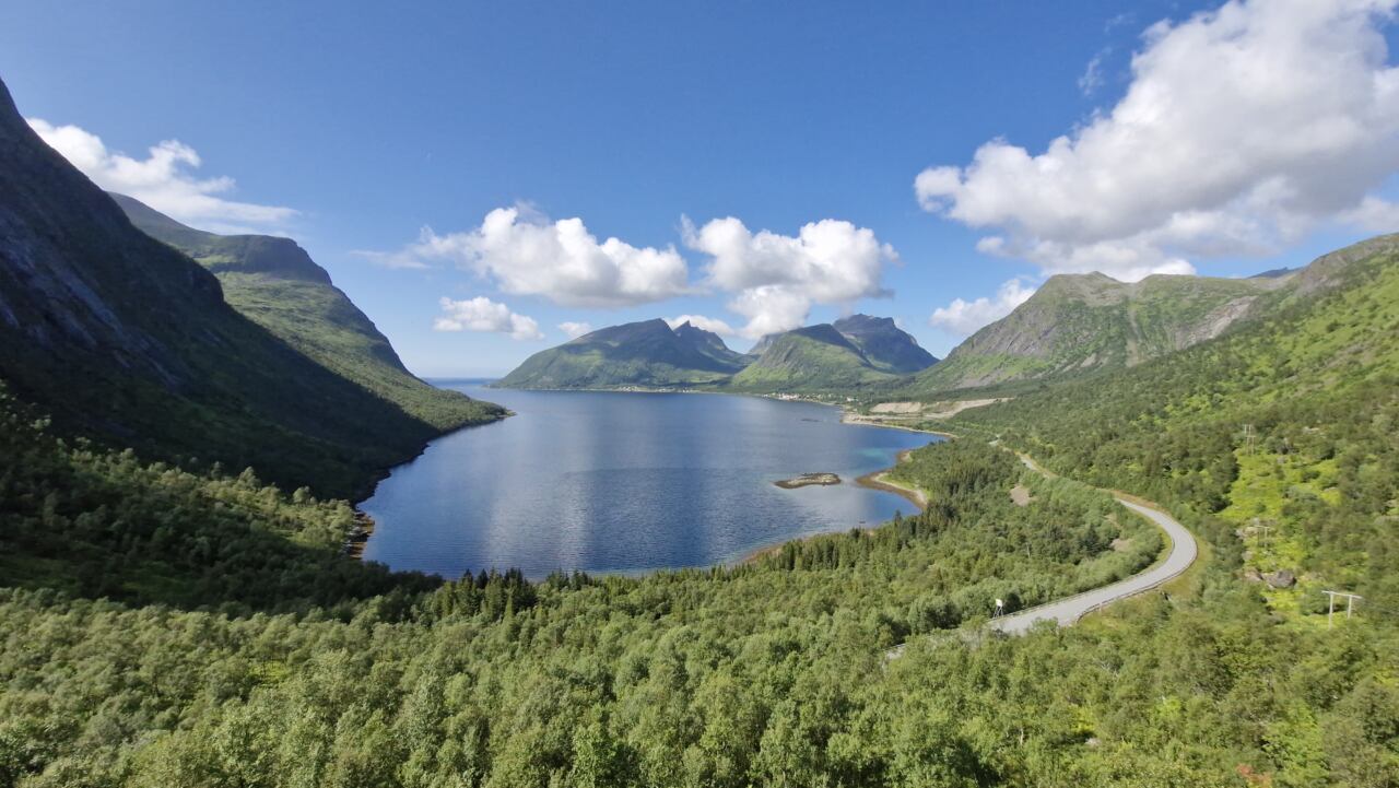 Am frühen Nachmittag erreichten wir schließlich die Insel Senja und ergatterten noch einen der heißbegehrten Parkplätze am Ersfjord Beach. Zuvor aber machten wir noch einen kurzen Stopp bei der Bergsbotn Aussichtsplattform und genossen dort einen fantastischen Panoramablick über den Bergsfjord auf der Insel Senja.