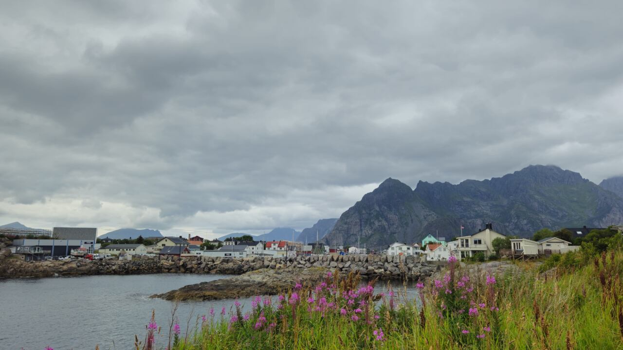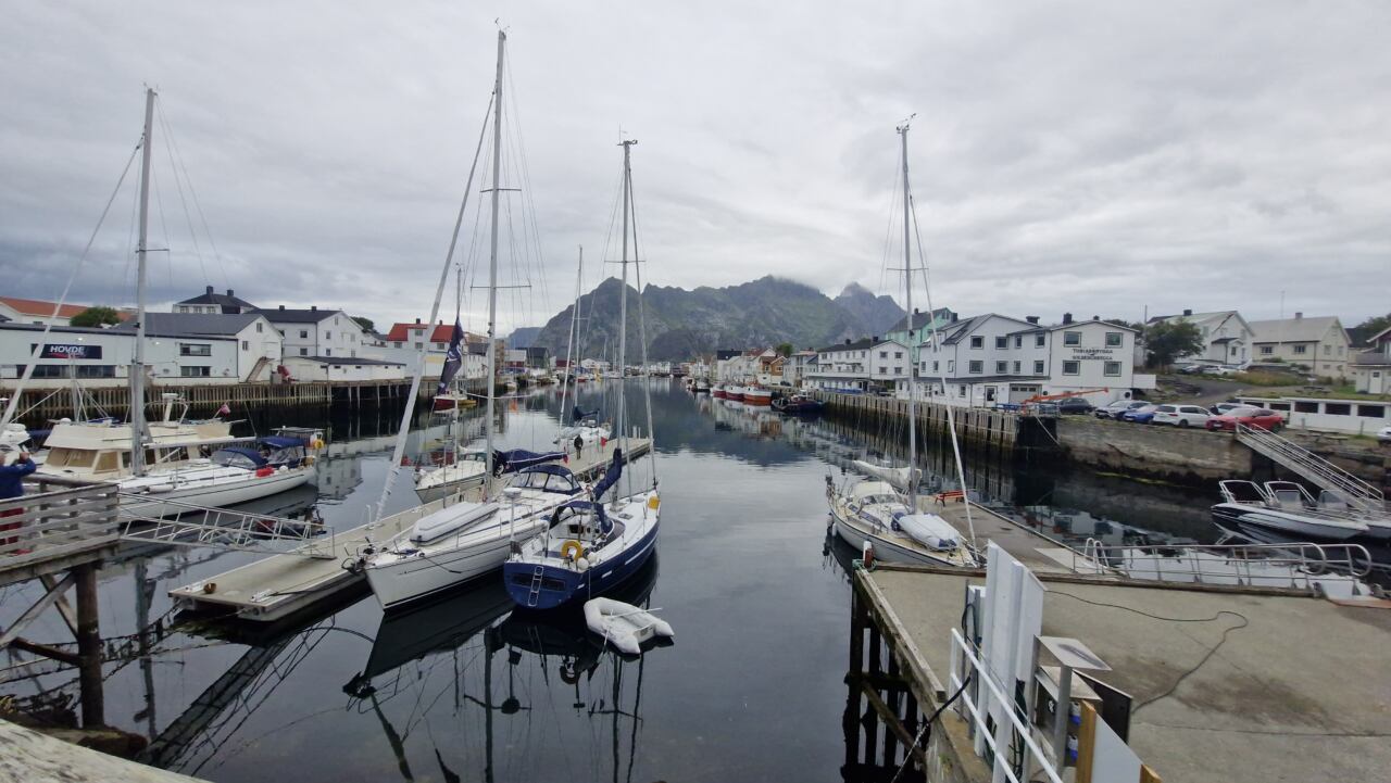 Anschließend führte uns unsere Reise in das berühmteste Fischerdorf der Lofoten: Henningsvær – auch bekannt als „das Venedig Norwegens“. Der malerische Ort ist ein Magnet für Touristen, weshalb uns klar war, dass hier mit einigem Trubel zu rechnen ist. Um einen möglichst zentralen Parkplatz zu bekommen (damit meine Mama mit ihrem Rollstuhl ebenfalls mit kann) planten wir, notfalls außerhalb zu übernachten um dann am nächsten Tag früh morgens einen Platz in der Ortsmitte zu bekommen. Und es kam wie erwartet – bereits weit vor dem Ortseingang waren alle Parkplätze restlos belegt. Park4night zeigte uns jedoch einen weiteren Parkplatz am Ende des Dorfes an, auf dem es angeblich immer etwas ruhiger sein sollte. Also versuchten wir es und manövrierten unser Wohnmobil durch die engen Straßen der kleinen Ortschaft, vorbei an zahlreichen Touristen und bunten Häusern. Unser Mut wurde letztendlich belohnt: Der Parkplatz war nicht nur überraschend leer, sondern bot auch die Möglichkeit, dort zu übernachten. Von hier aus war der Ortskern in wenigen Minuten bequem zu Fuß erreichbar.