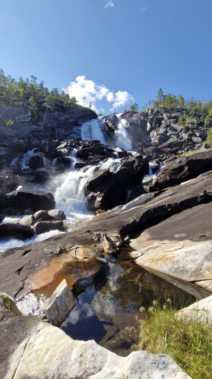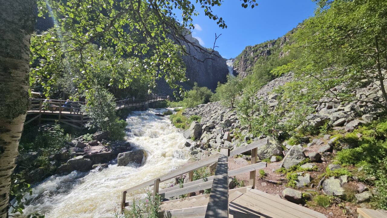 Es ist schon wirklich beeindruckend die enormen Wassermassen zu beobachten wie sie aus rund 182 Metern spektakulär in die enge, wilde Måbødalen-Schlucht hinab stürzen. Dabei lässt sich das einzigartige Naturschauspiel gleich von mehreren Aussichtsplattformen und somit aus verschiedenen Perspektiven bestaunen – u.a. von einer Fußgängerbrücke, die direkt über die Schlucht führt.