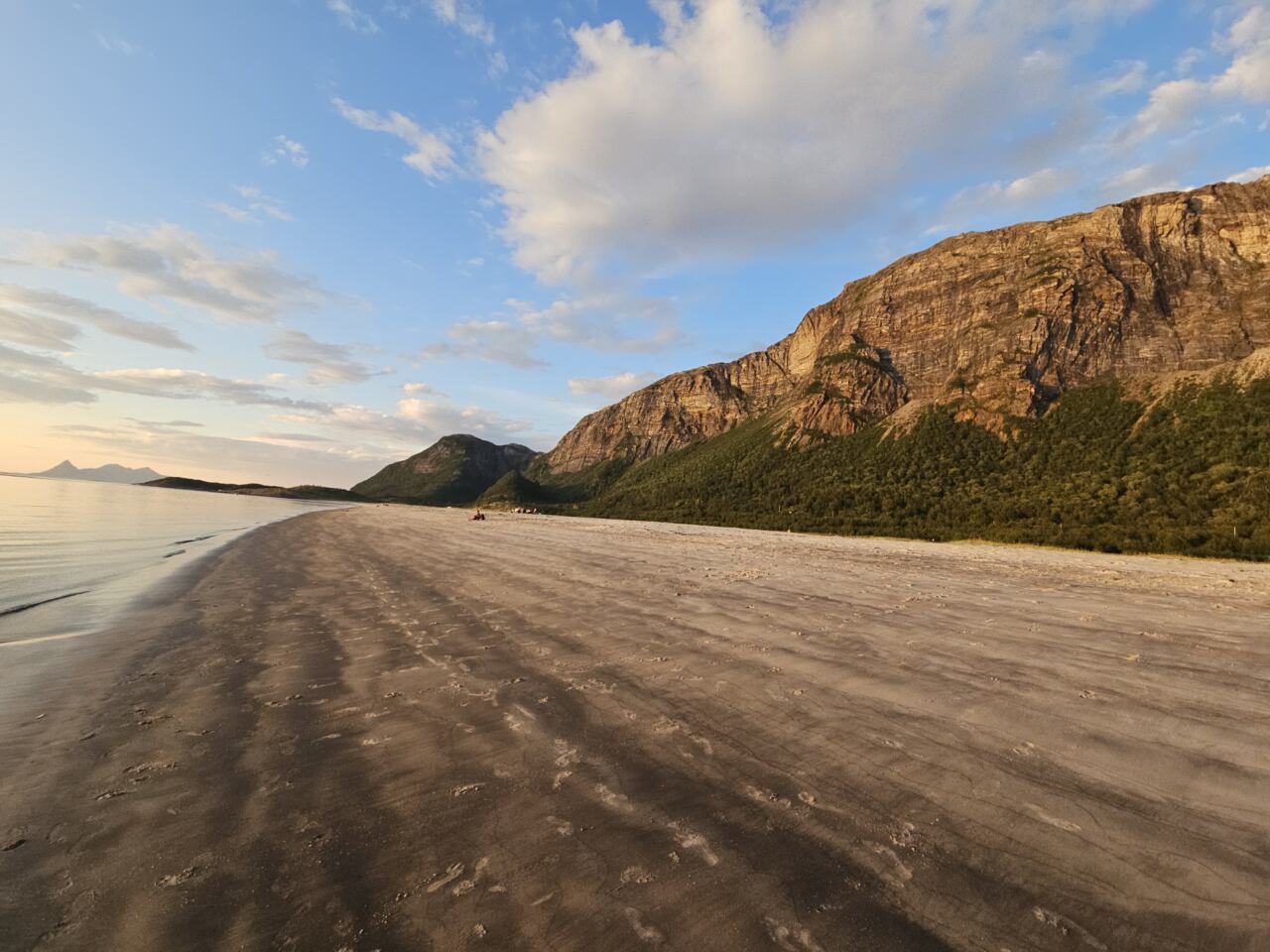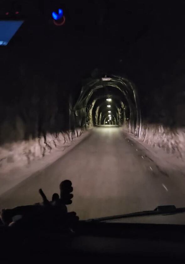 Die anschließende Weiterfahrt zum bekannten Ersfjordstranda gestaltete sich dann jedoch alles andere als entspannt. Im krassen Gegensatz zu den ruhigen, gut ausgebauten Straßen Schwedens erwarteten uns hier enge, kurvenreiche und zum Teil sehr holprige Straßen, gekrönt von dunklen, schmalen Tunneln, in denen man stets hoffte, dass einem keiner entgegen kam. Doch das Schicksal hatte andere Pläne: Natürlich begegnete uns ausgerechnet ein Bus. Da ein Ausweichen unmöglich war, hieß es, tief durchatmen, Ruhe bewahren und millimetergenau manövrieren – nichts für schwache Nerven.