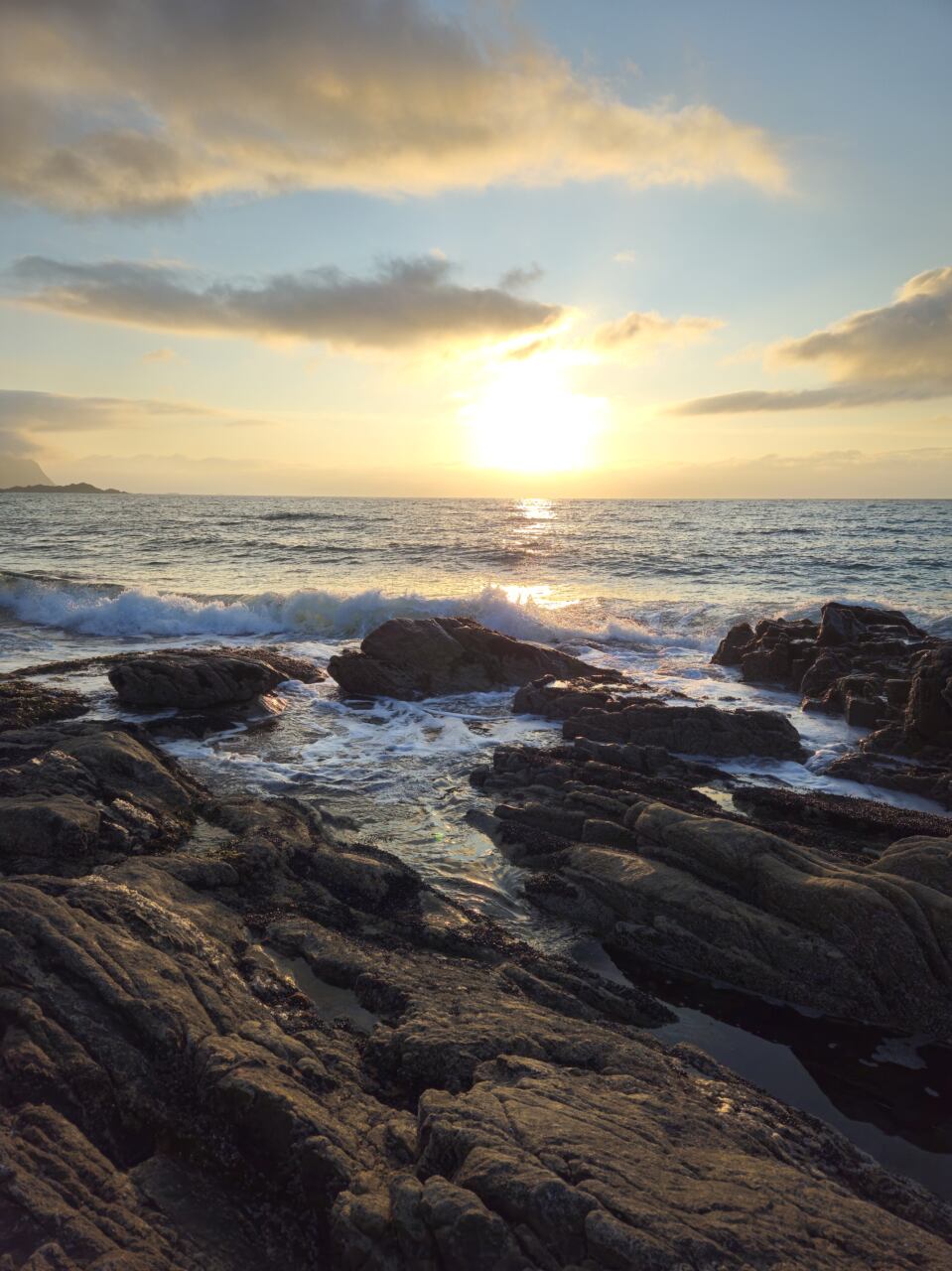 Der Campingplatz liegt direkt am Strand von Skagsanden nördlich des Dorfes Ramberg und hat jede Menge zu bieten – wie unter anderem: Surf- und Yoga-Kurse, Saunen, einen Beachvolleyplatz, SUP-Minikajaks- und Fahrrad-Verleih sowie eine Lofoten Beach Bar, auf deren Terrasse man herrlich das Meer und die Sonnenuntergänge (ja, auch die gibt es mittlerweile wieder;) mit einen Drink genießen kann. Aber das beste daran – zumindest empfanden wir das so – keine Vorreservierungen, wer zuerst kommt, mahlt zuerst.