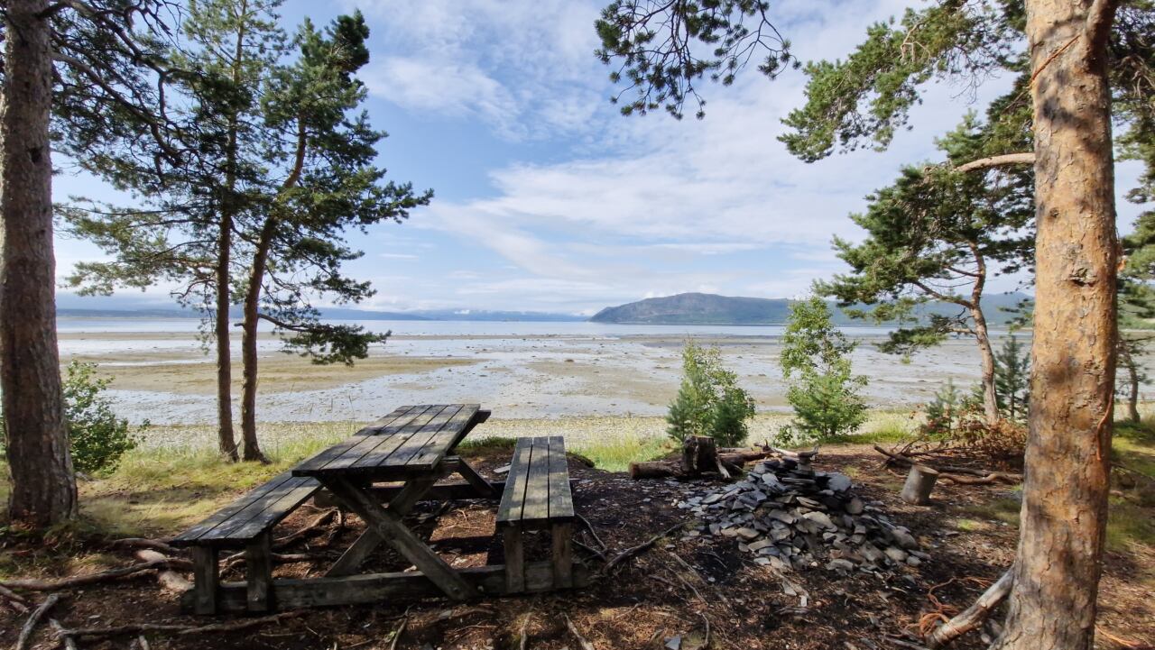 Unsere erste größere Pause legten wir auf einem malerischen Picknickplatz in einer Bucht kurz vor Alta ein. Wir genossen den Blick aufs Meer und die Weite, die sich uns bot – ein beeindruckender Kontrast zu den endlosen Wäldern, die wir zuvor in Schweden durchquert hatten.
