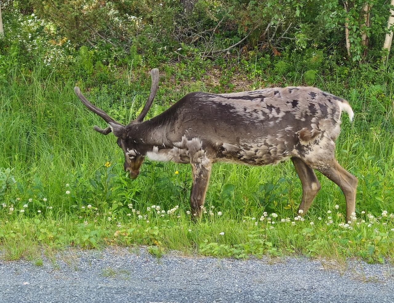 Am nächsten Morgen trennten wir uns schweren Herzens von diesem schönen Fleckchen Erde – es warteten ja schließlich noch jede Menge anderer toller Orte auf uns. Als erstes hieß es jetzt aber Einkaufen zu gehen um unsere Vorräte für die nächsten Tage wieder aufzufüllen. Dann ging es mit mehreren Pausen auf der E45 weiter Richtung Norden. Und endlich sahen wir sie – Rentiere! Völlig entspannt liefen sie in aller Ruhe direkt an der Straße entlang – was für ein Anblick!