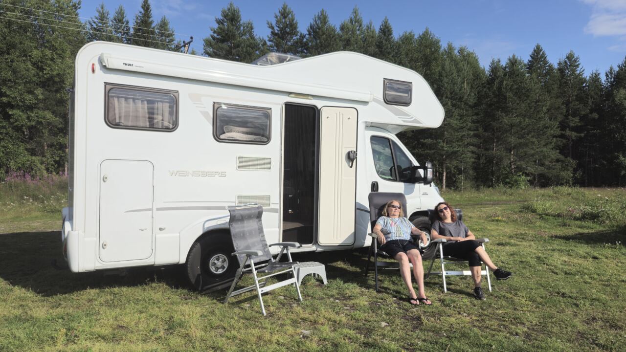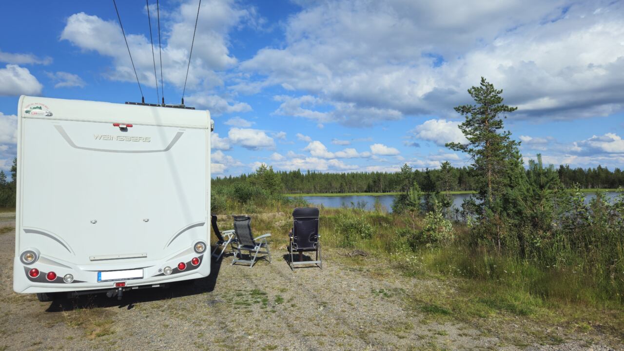 Anschließend setzten wir unsere Reise Richtung Strömsund fort. Das Wetter zeigte sich weiterhin von seiner besten Seite: 24 Grad und strahlender Sonnenschein. Gegen Mittag legten wir eine Pause an einem idyllisch gelegenen Badesee bei Fäker ein. Hier ließen wir die Seele baumeln und genossen die Ruhe. Für stundenlange Fahrten blieb später noch genug Zeit – vor allem, wenn das Wetter wieder einmal umschlagen sollte. Am späten Nachmittag entdeckten wir schließlich den bisher schönsten Übernachtungsplatz unserer Reise: eine Wiese direkt an einem See mit Badezugang, umgeben von dichtem Wald. Hier konnten wir einfach abschalten und die überwältigende Natur um uns herum in vollen Zügen genießen.