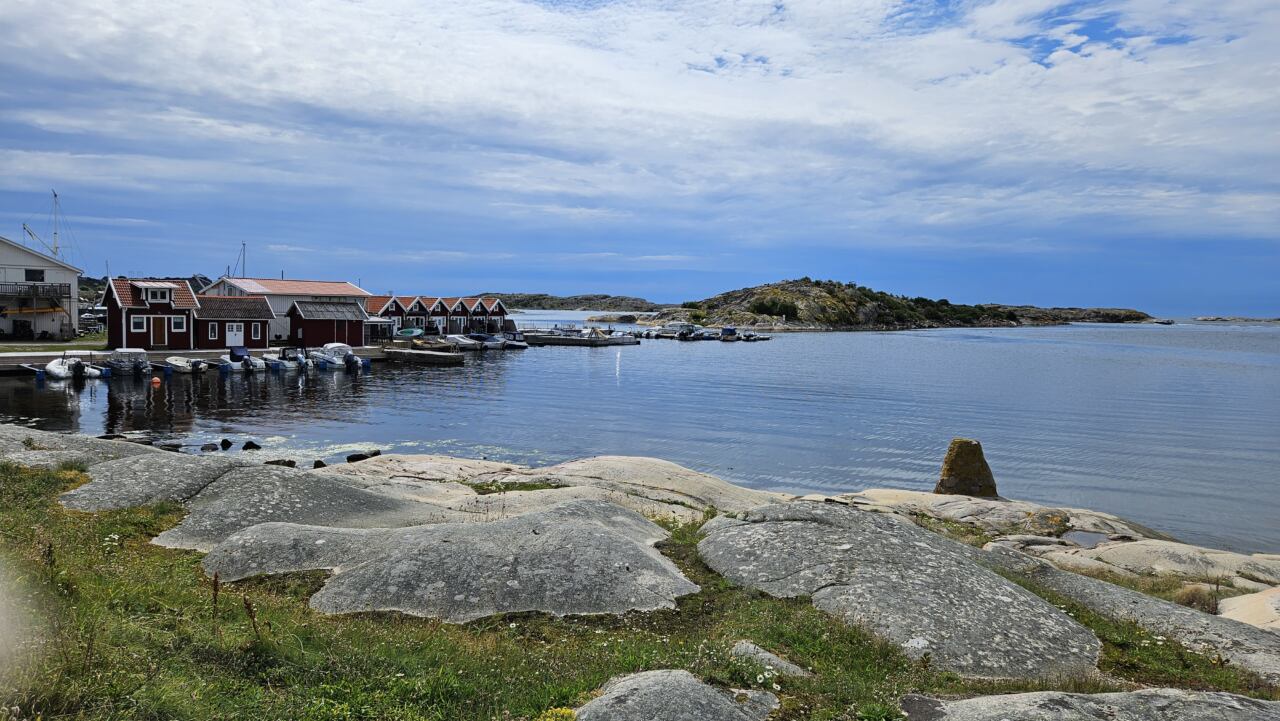 Mit angenehmen 18 Grad und überwiegend sonnigem Wetter war es der perfekte Tag für eine Erkundungstour durch das malerische Fischerdorf an der schwedischen Westküste. Wir starteten mit einem ausgedehnten Spaziergang entlang der Klippen, von wo aus sich uns ein atemberaubender Blick auf das weite Meer und die raue Schärenlandschaft bot. Anschließend schlenderten wir die Smögenbryggan entlang – eine 1000 Meter lange Holzpromenade –, vorbei an bunten Holzhäusern, sanft schaukelnden Booten, einladenden Cafés, gemütlichen Restaurants und zahlreichen kleinen Läden.