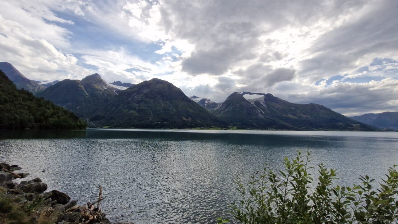Unser nächstes Ziel war nun Hjelle, wo ein traumhaftes Plätzchen direkt am See uns lockte. Aber zuerst mussten wir uns wieder über zahlreiche Kurven nach oben Kämpfen – der Aufstieg dauerte gefühlt ewig.