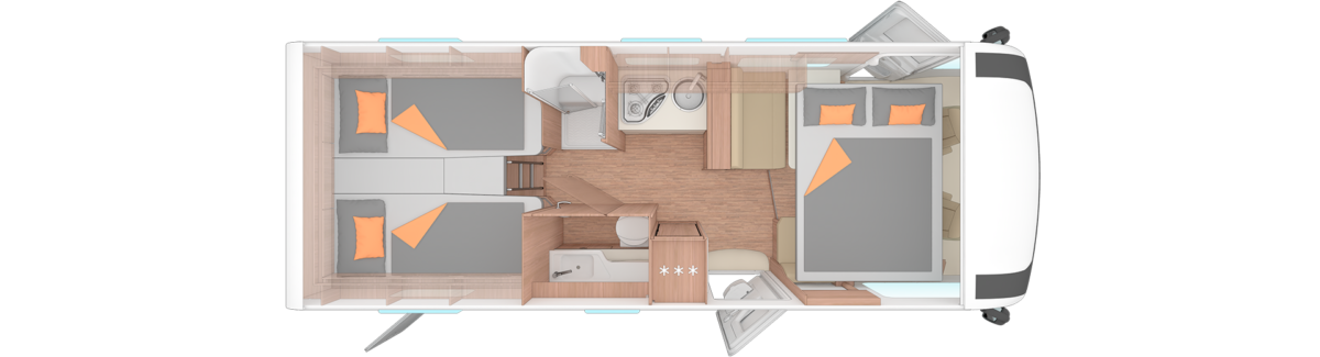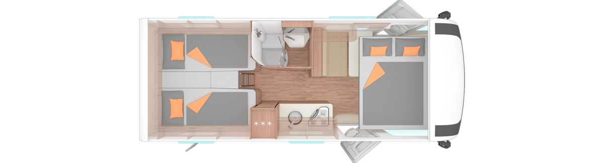 Der größte Grundriss der Serie bietet besonders viel Platz und eignet sich hervorragend für längere Reisen.